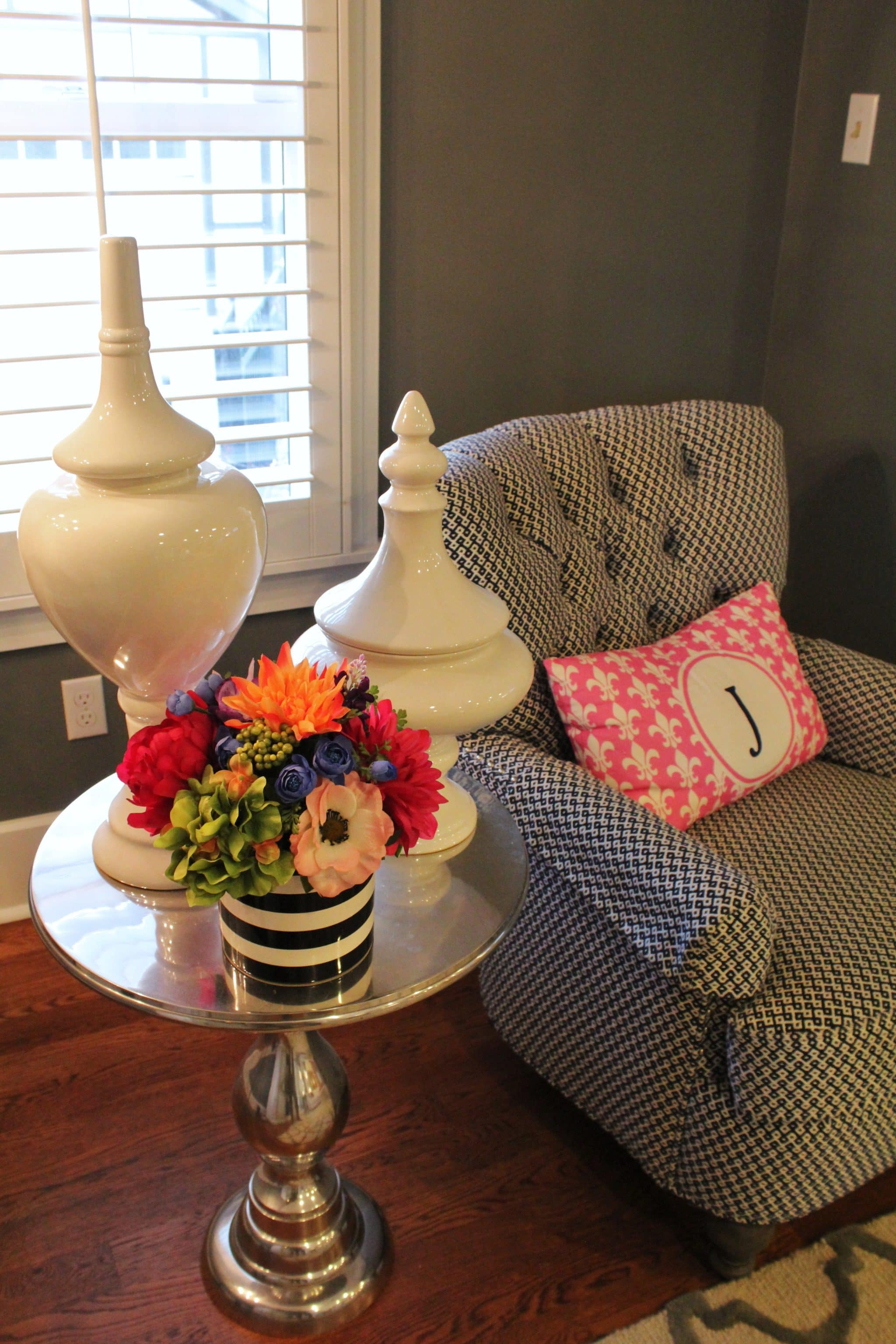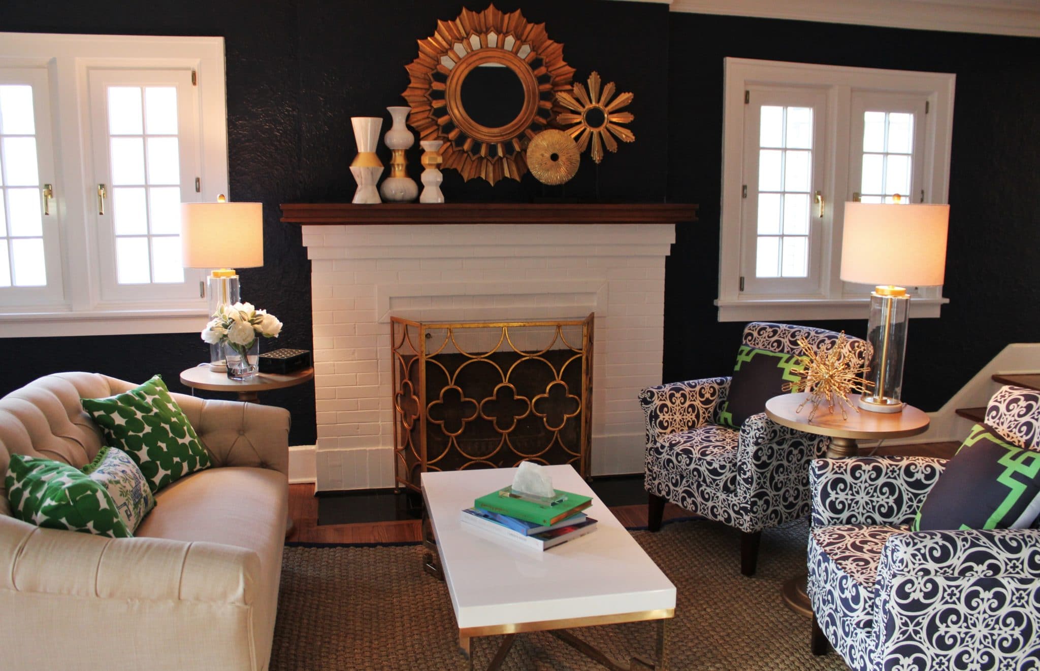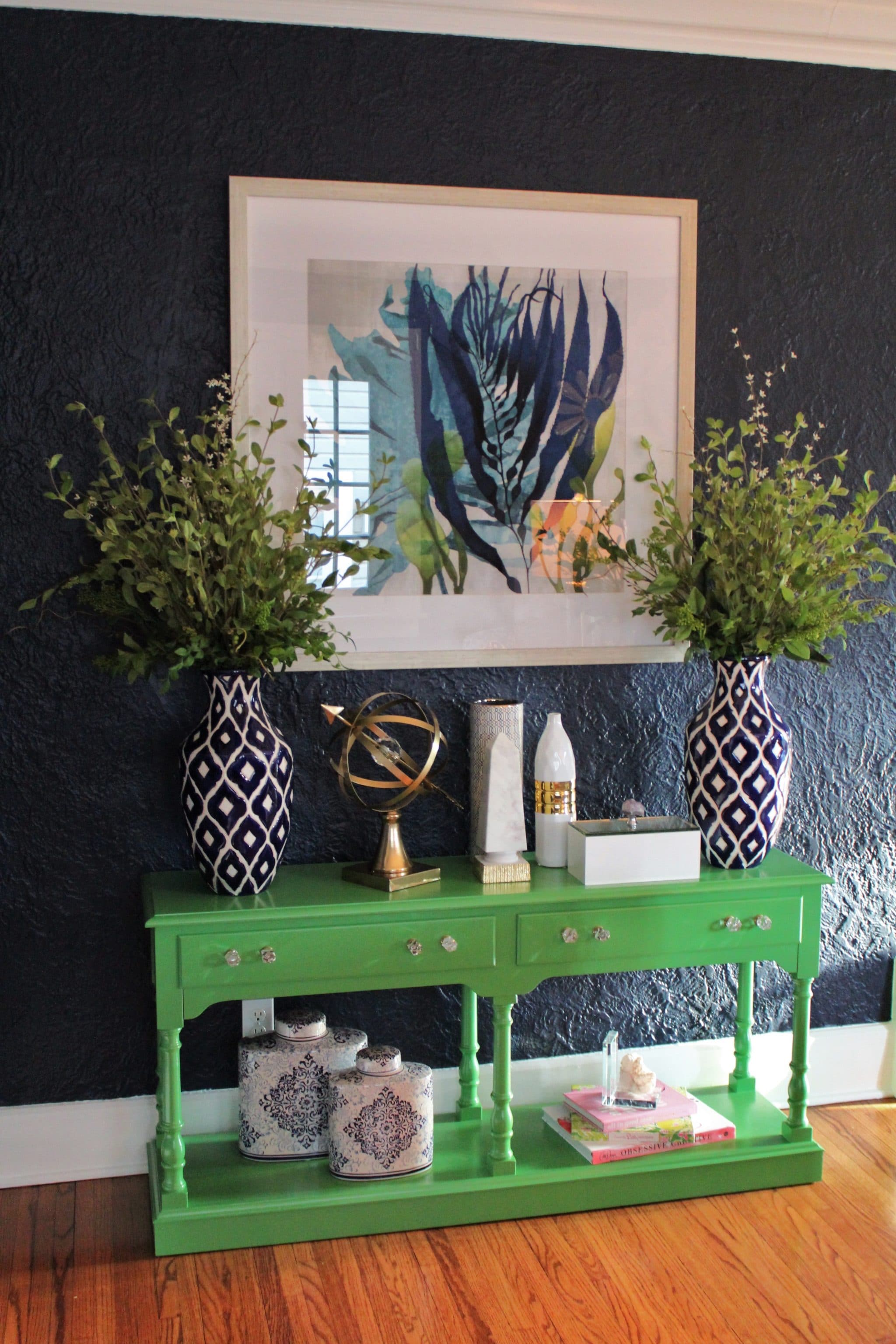 We indulged Katy’s Kate Spade style in the formal living room. Though several people tried to talk her out of the navy blue walls, Katy held true to our vision.