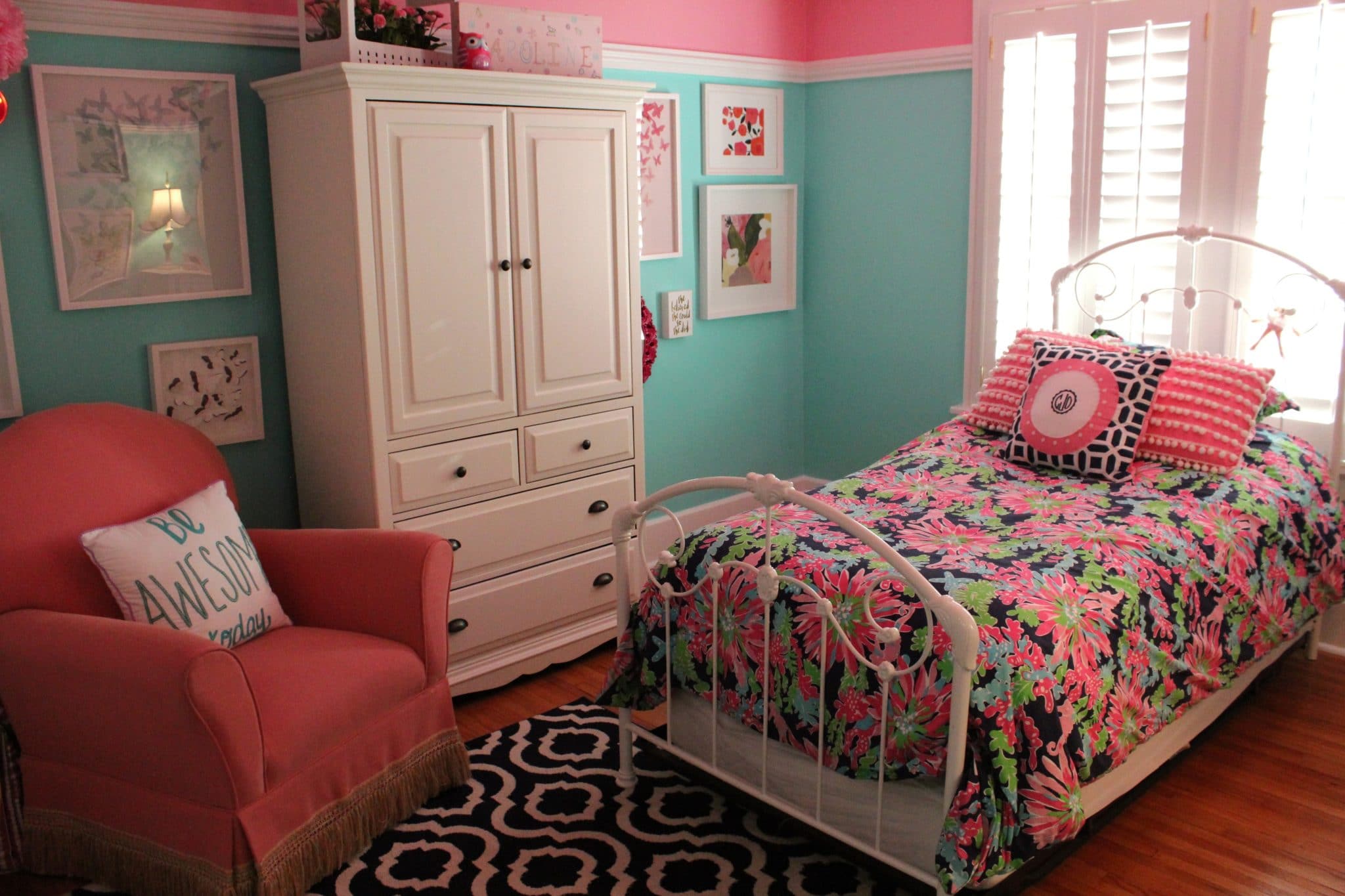 Katy and I had a great time designing the children’s rooms. Their daughter’s bright pink room is probably one of my favorites.