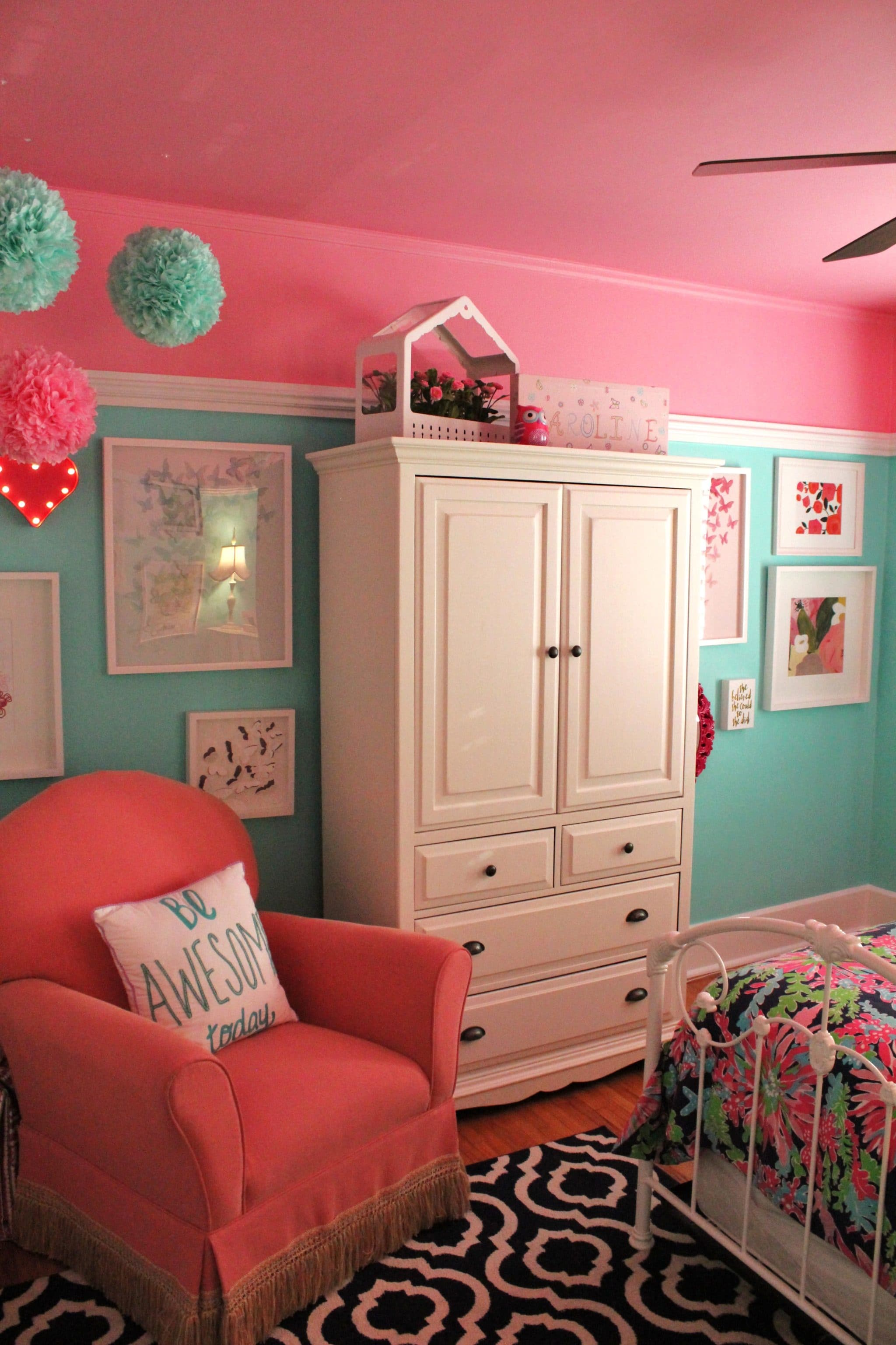 Katy saw this painting technique while touring display homes in Florida. I was skeptical at first, but now that I’ve seen the results of the turquoise and pink together, I’m a fan.