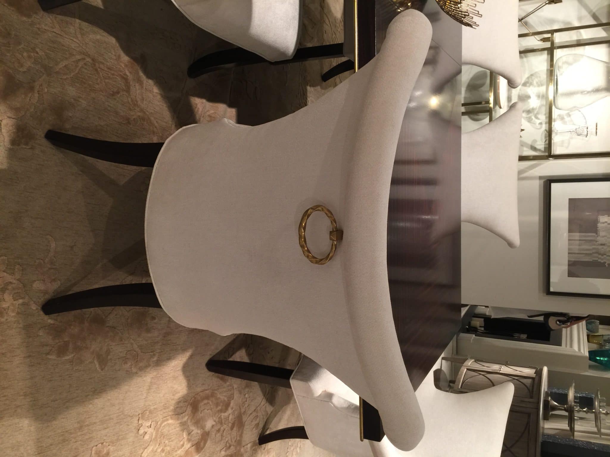 - Decorative hardware. Decor is all in the details and hardware can make a huge statement, especially on the back of chairs.