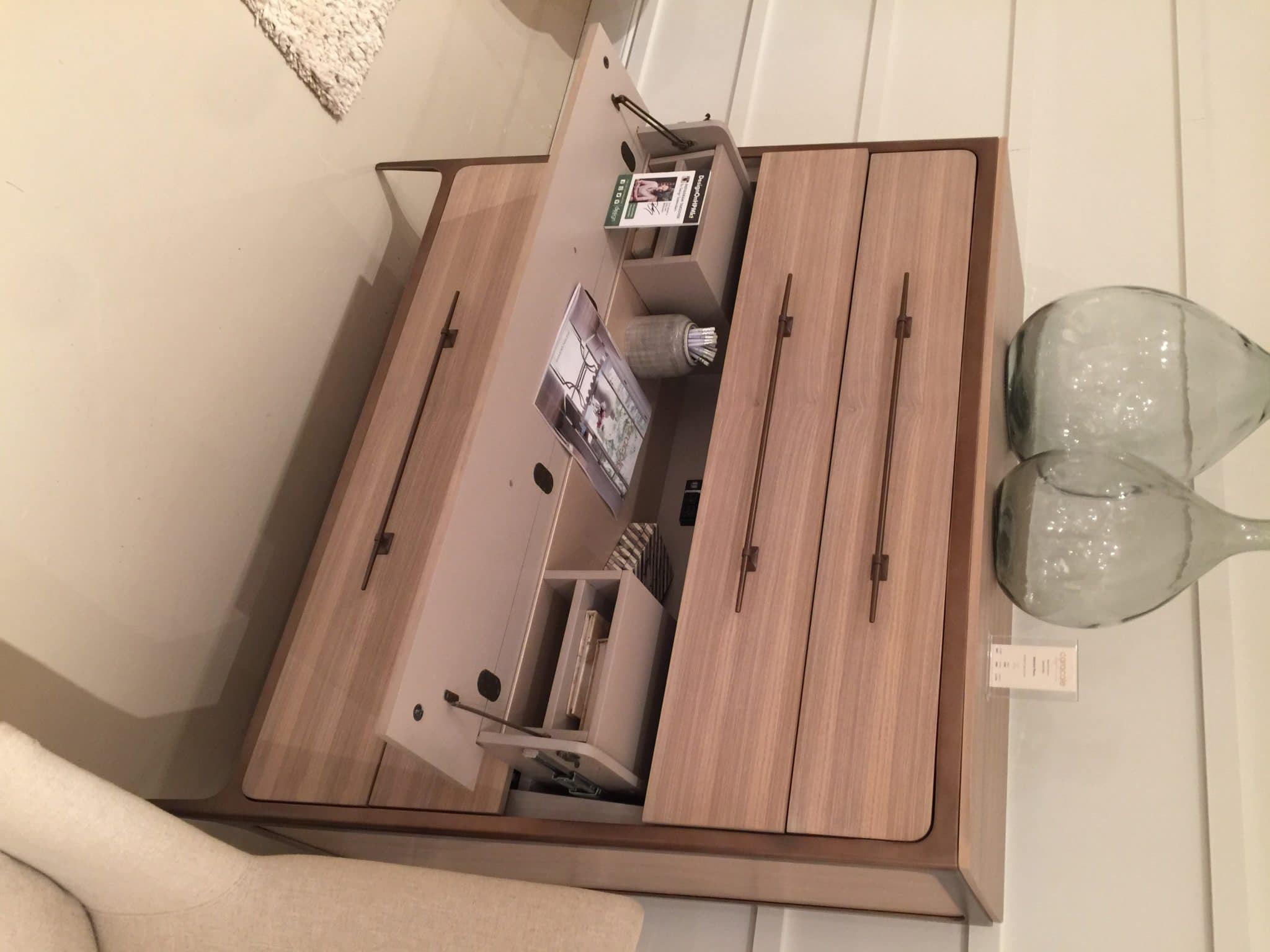- Maybe it’s the new fascination with small spaces, but suddenly I’m seeing accent pieces with hidden functions. Nightstands that slide open to reveal a jewelry drawer or a secret charging station.
